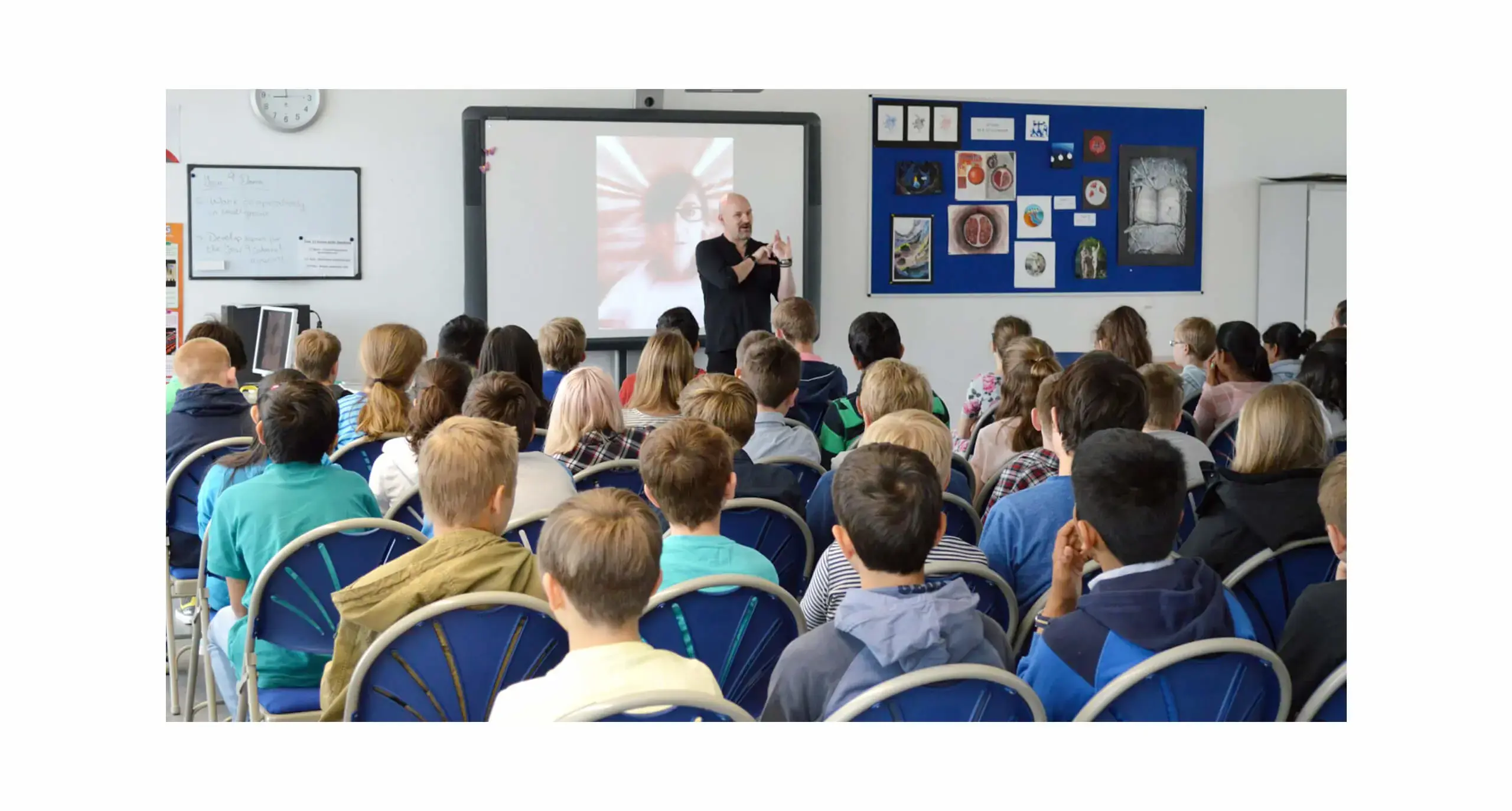 Later on in the day, Scarrow lead a workshop with the Year 7 and 8 students in their classrooms. Within the workshop Scarrow showed the students techniques on how to tap into the creative mind in order to generate original ideas.