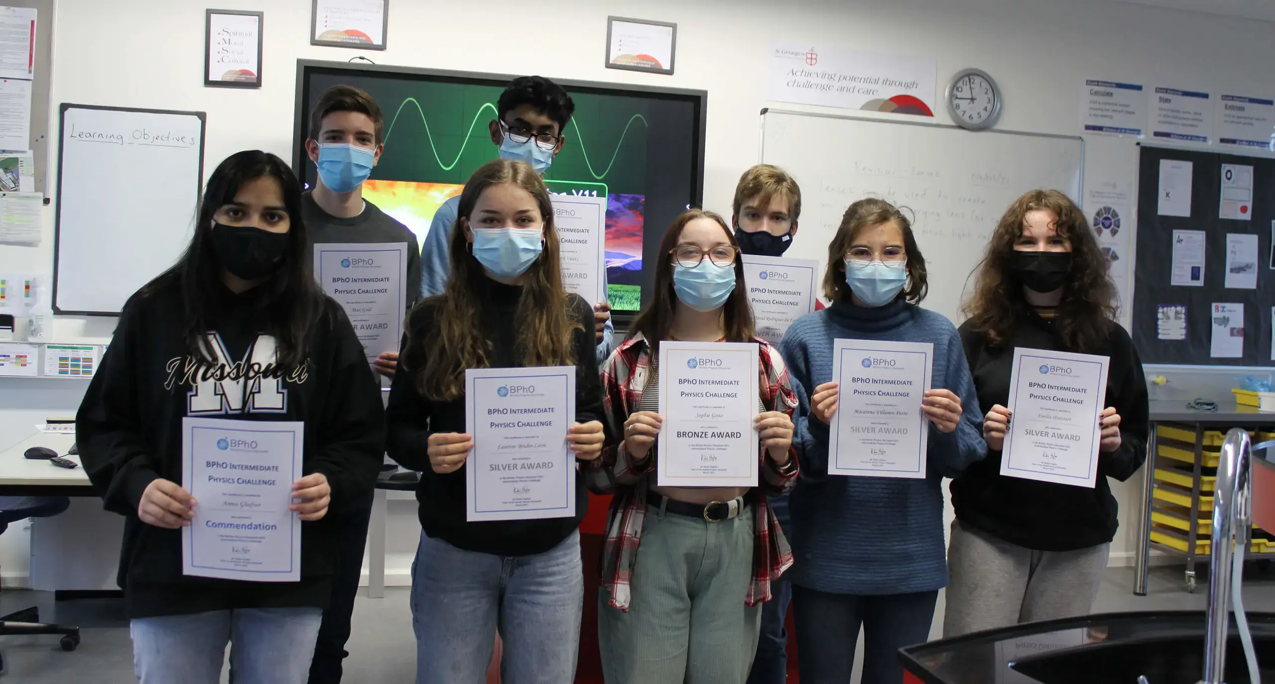 Several Year 11 students participated in the British Physics Olympiad – Intermediate Challenge. Over 4700 students entered the competition which included questions based on a range of topics including dynamics, electricity, optics, heat, and waves. St George’s students achieved seven silver awards, one bronze award and one commendation award. Congratulations to all the St George’s students who participated in the competition.