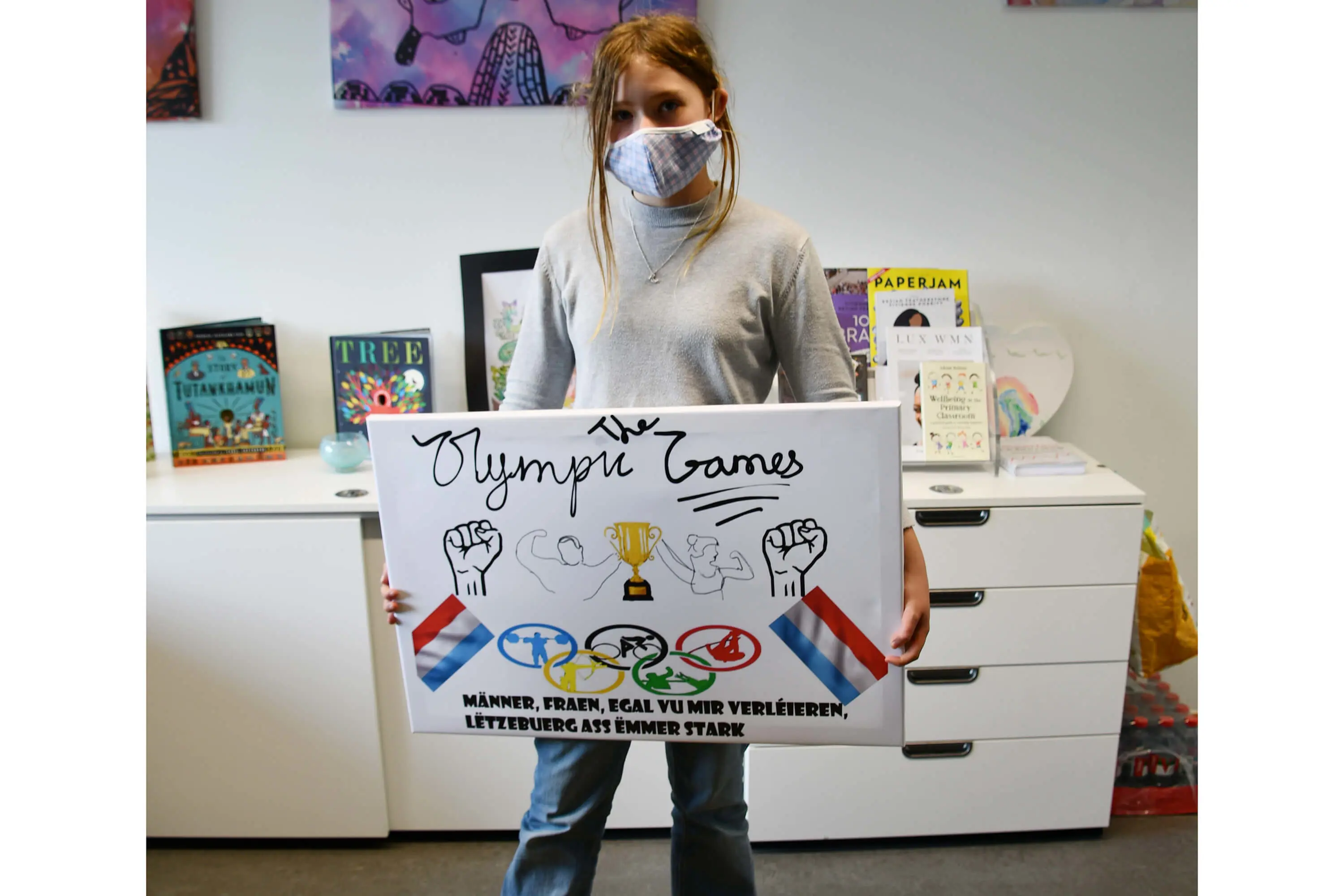 During Luxembourgish lessons, Primary students learnt all about the Luxembourgish Olympic history with a particular focus on Women in Luxembourgish sporting history. During lessons students learnt about the Olympic participants taking part in Tokyo 2021 and as homework students designed a motivational poster with a Luxembourgish slogan to support the Luxembourgish athletes in Tokyo. Please see below the winning posters - well done to all the students involved!