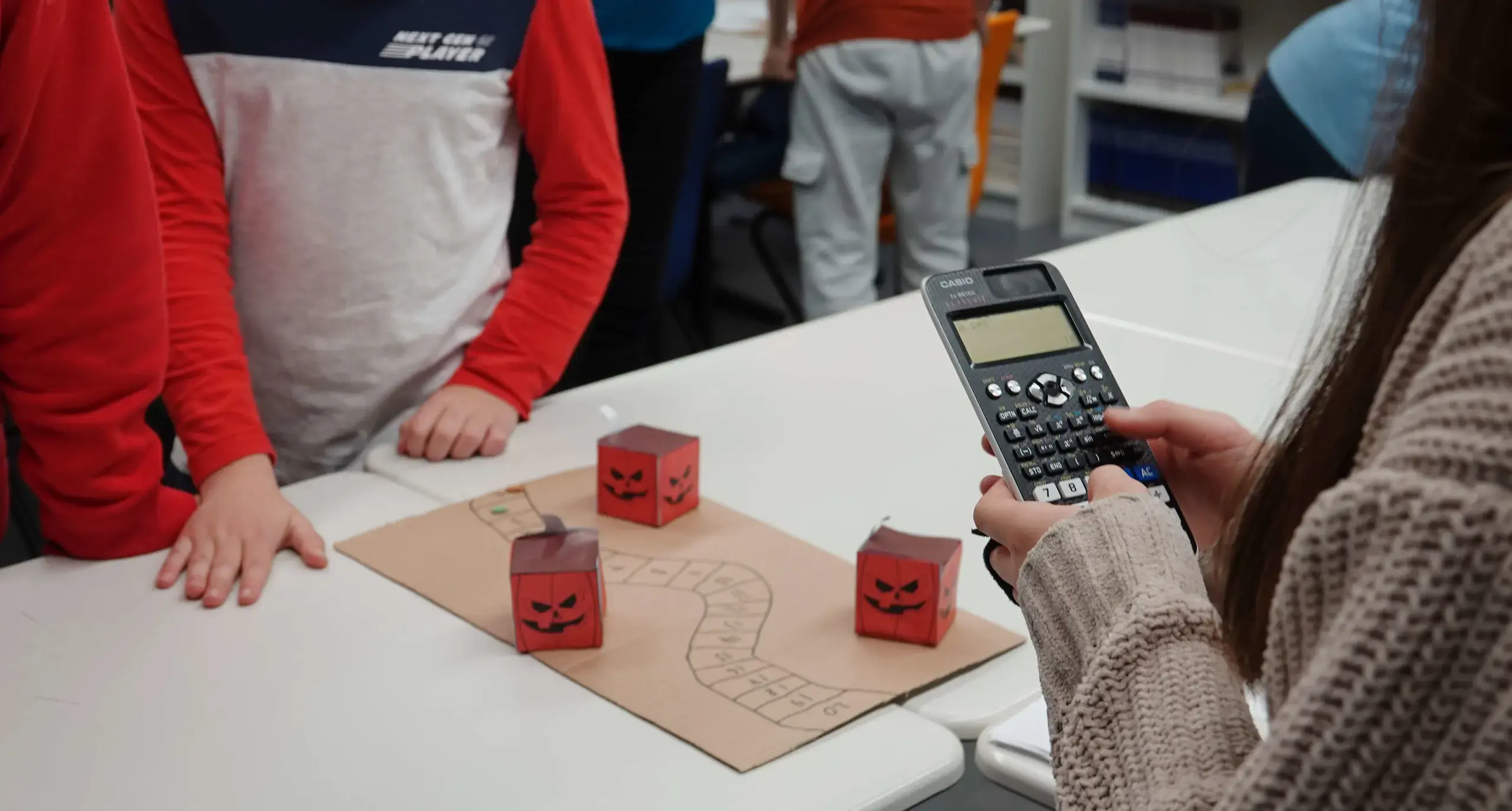 Students recycled cardboard and paper to build game boards, spinners, game pieces, tokens and one pair constructed a maths café with cookies and croissants. Other games included a dungeon where participants could trade their prizes, a Taylor Swift-themed contest, The Fame Game, Maths Pong, a maths version of snakes and ladders, and several where the correct answer to a question led to the added challenge of a basketball hoop or a penalty kick.