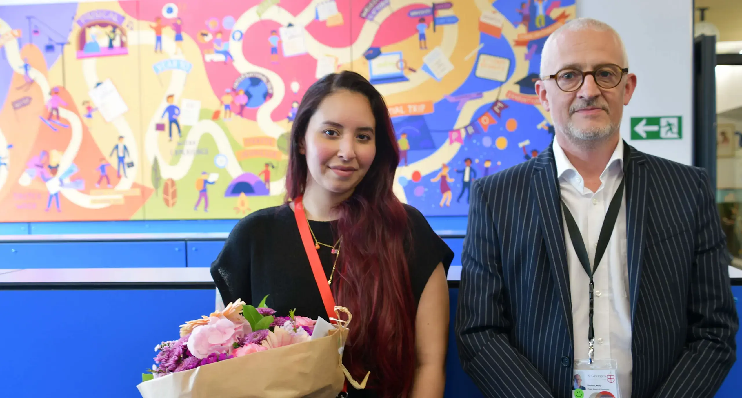 The mural was painted by St George’s Alumni Ana Morales, who graduated in 2013. Initial plans for the journey were created by Head of Key Stages in Spring 2021. Ms Morales then worked with students to determine key events for each year group and visualise each step of the journey.