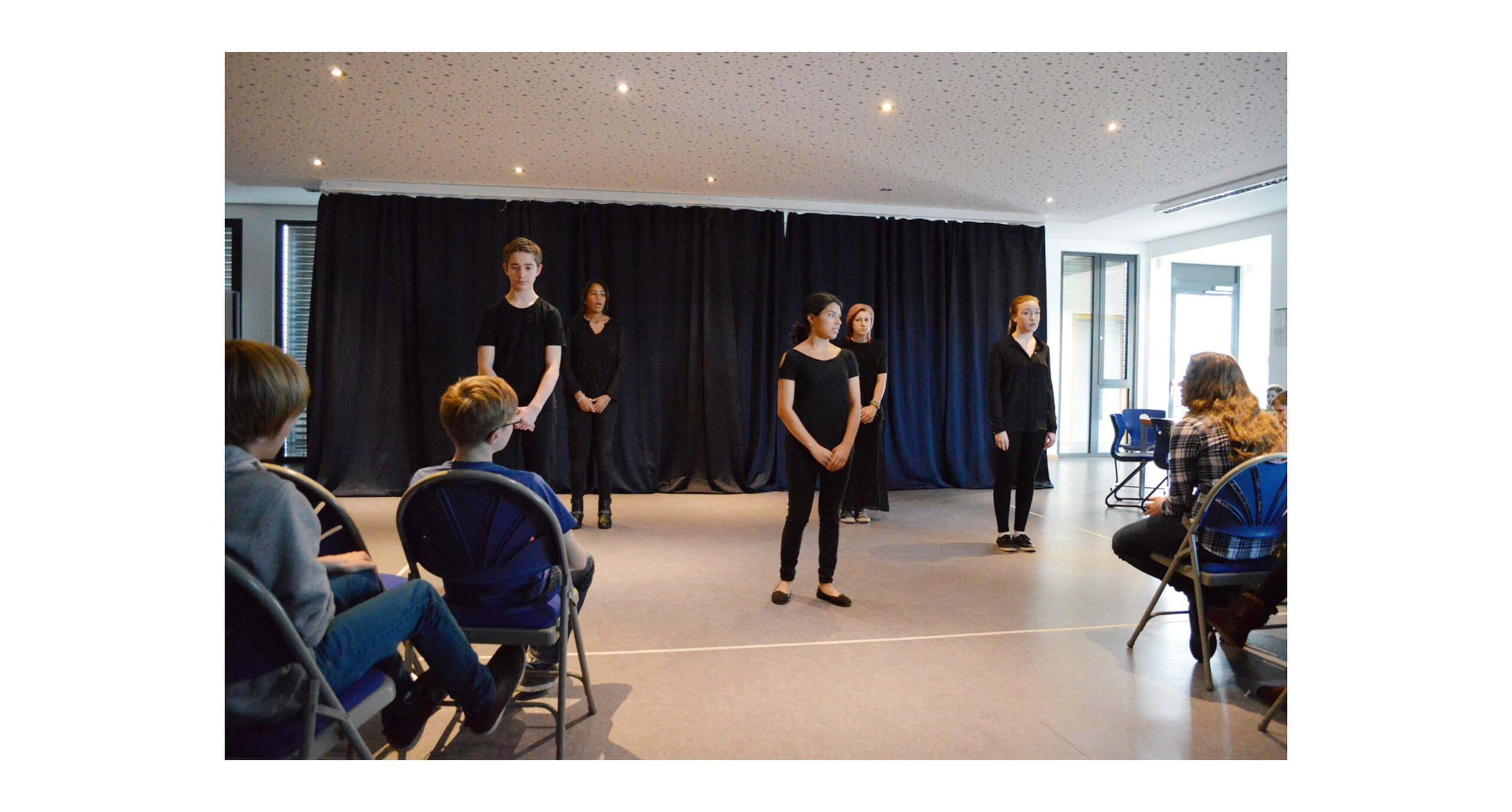 As a reward Mrs White and Mrs Rigby organised a trip to the Grand Theatre of Luxembourg on the morning of the 16th January for a tour of the whole theatre including places where normal guests aren’t allowed to go like backstage, orchestra, light control room, on stage, and under the stage. Everyone had a great time and realised how many different opportunities there are to work in theatre.