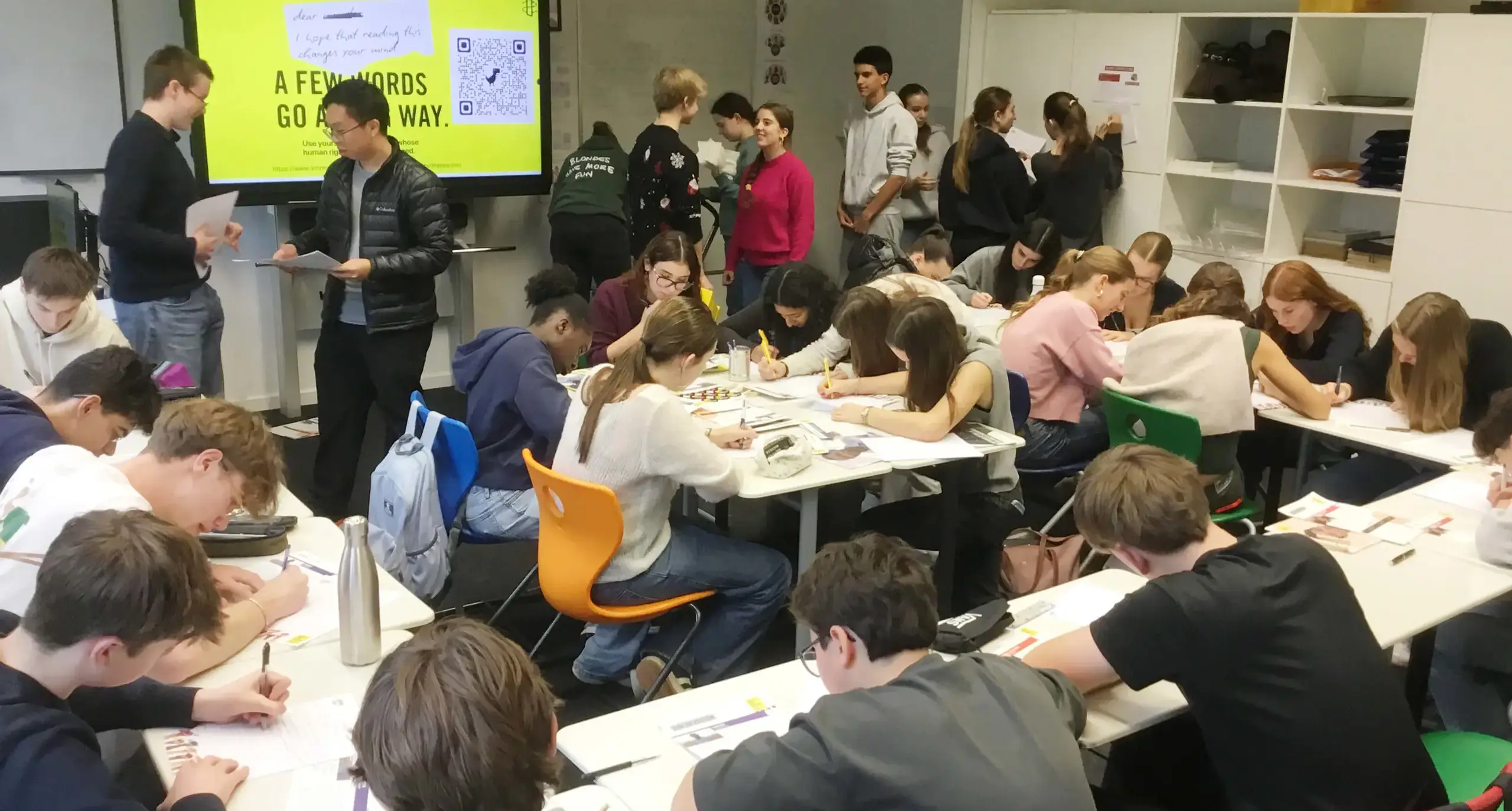 Using resources from Amnesty International, students crafted powerful messages of solidarity. Their energy and commitment were inspiring, with staff and students from Years 9 to 13 coming together to stand up for human rights and show how small actions can make a real difference.