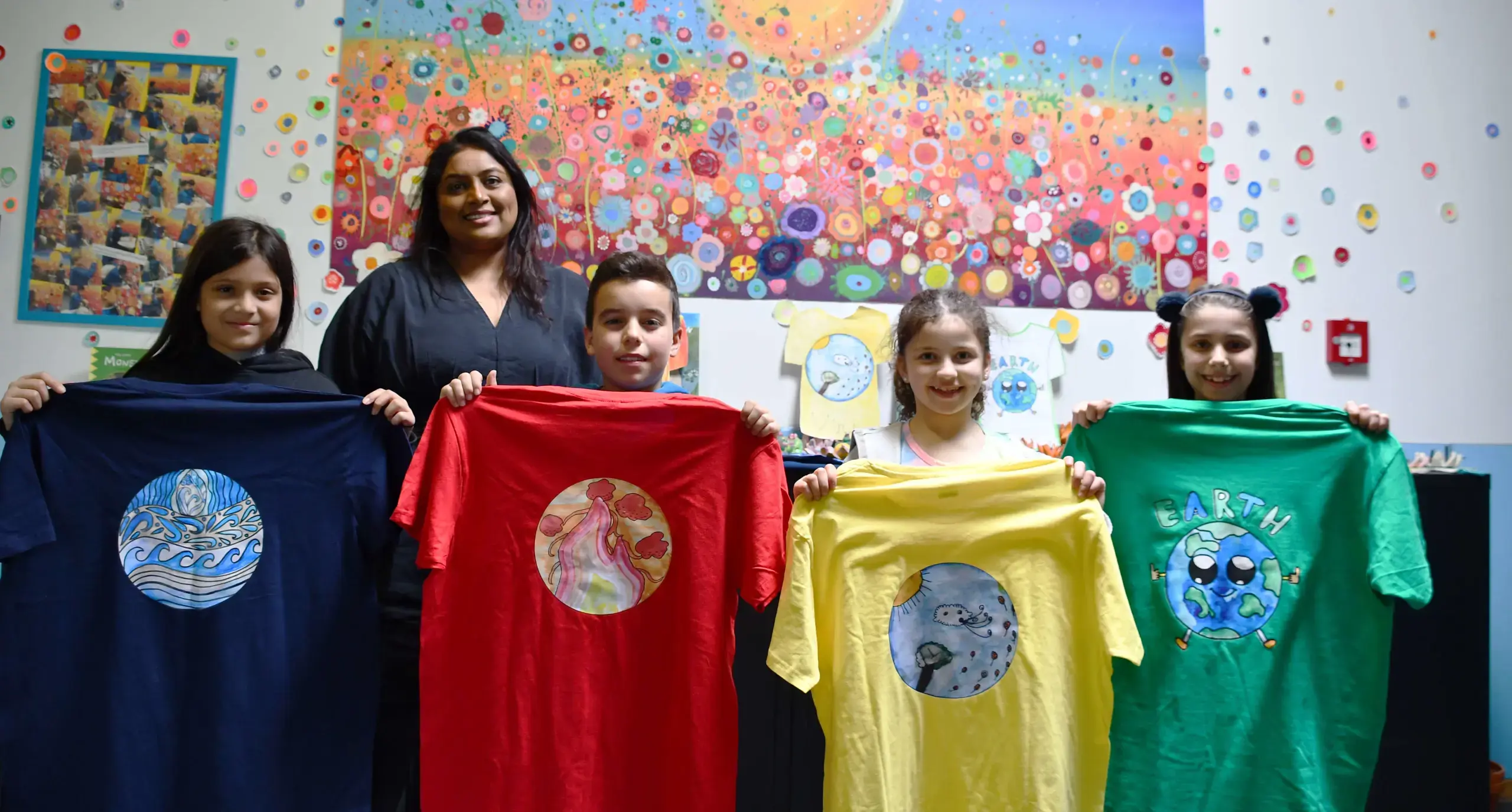 A competition was held to find designs for Primary's new house T-shirts. Students from all year groups submitted excellent art (which you can see as stylish banners hanging from the ceiling), but we could only choose four designs.