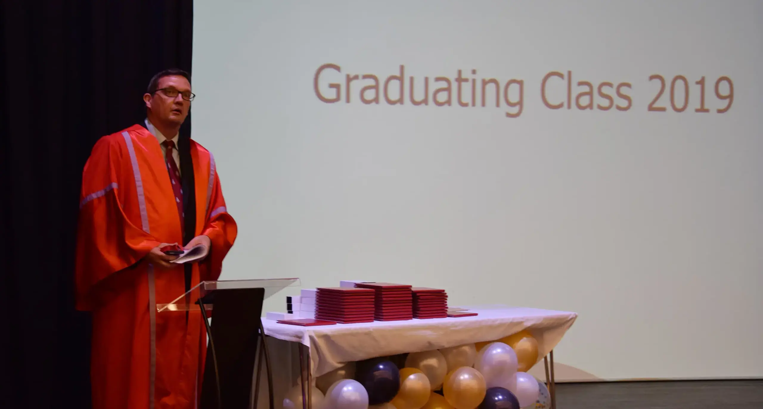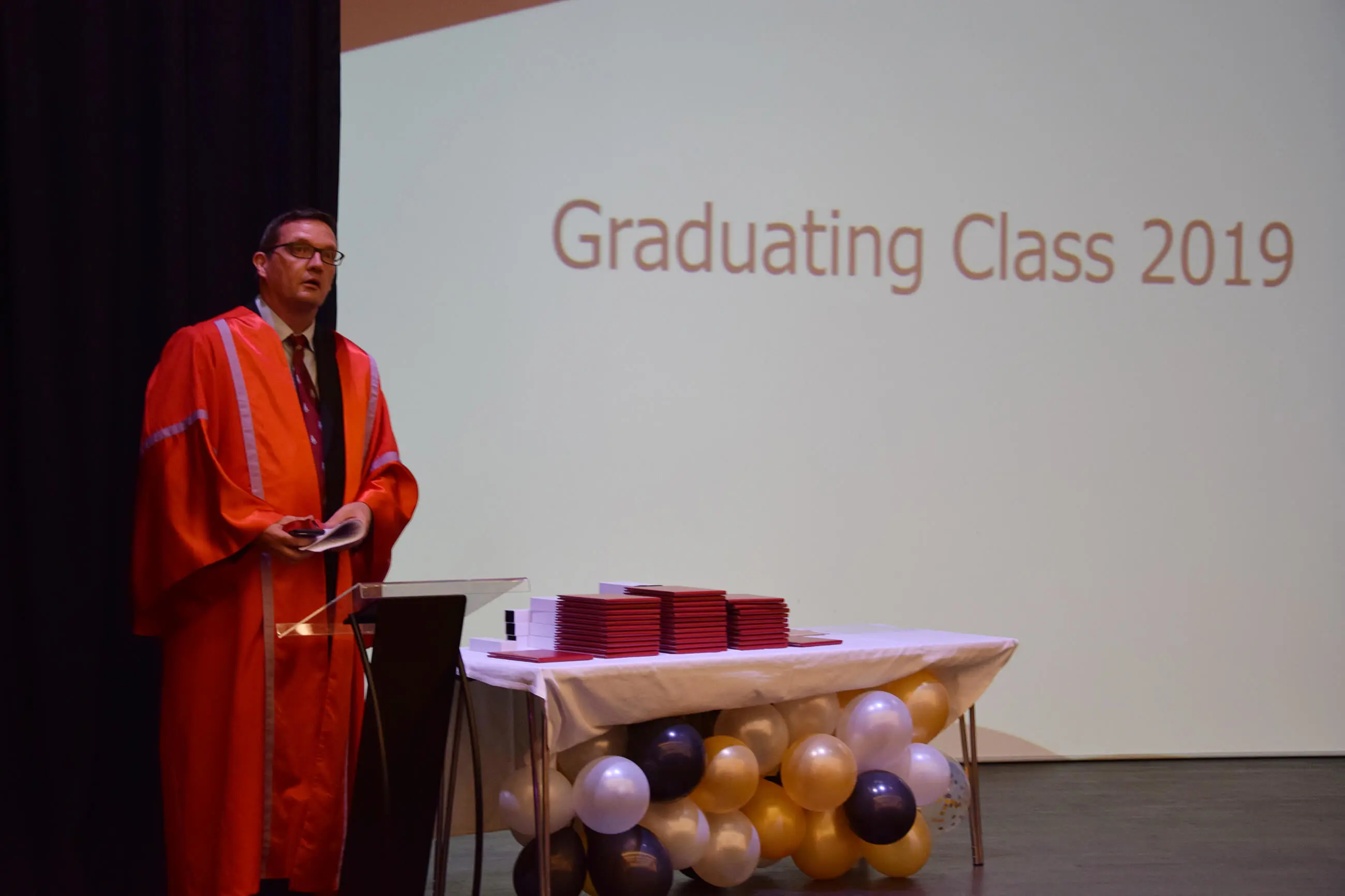 Mr Chris Cheesman, the Chairman of the Board of Governors opened the ceremony for what will be the last time before his retirement in June 2019. His successor Mr Phillip Charlton will be taking over his chairman duties for the next academic year.