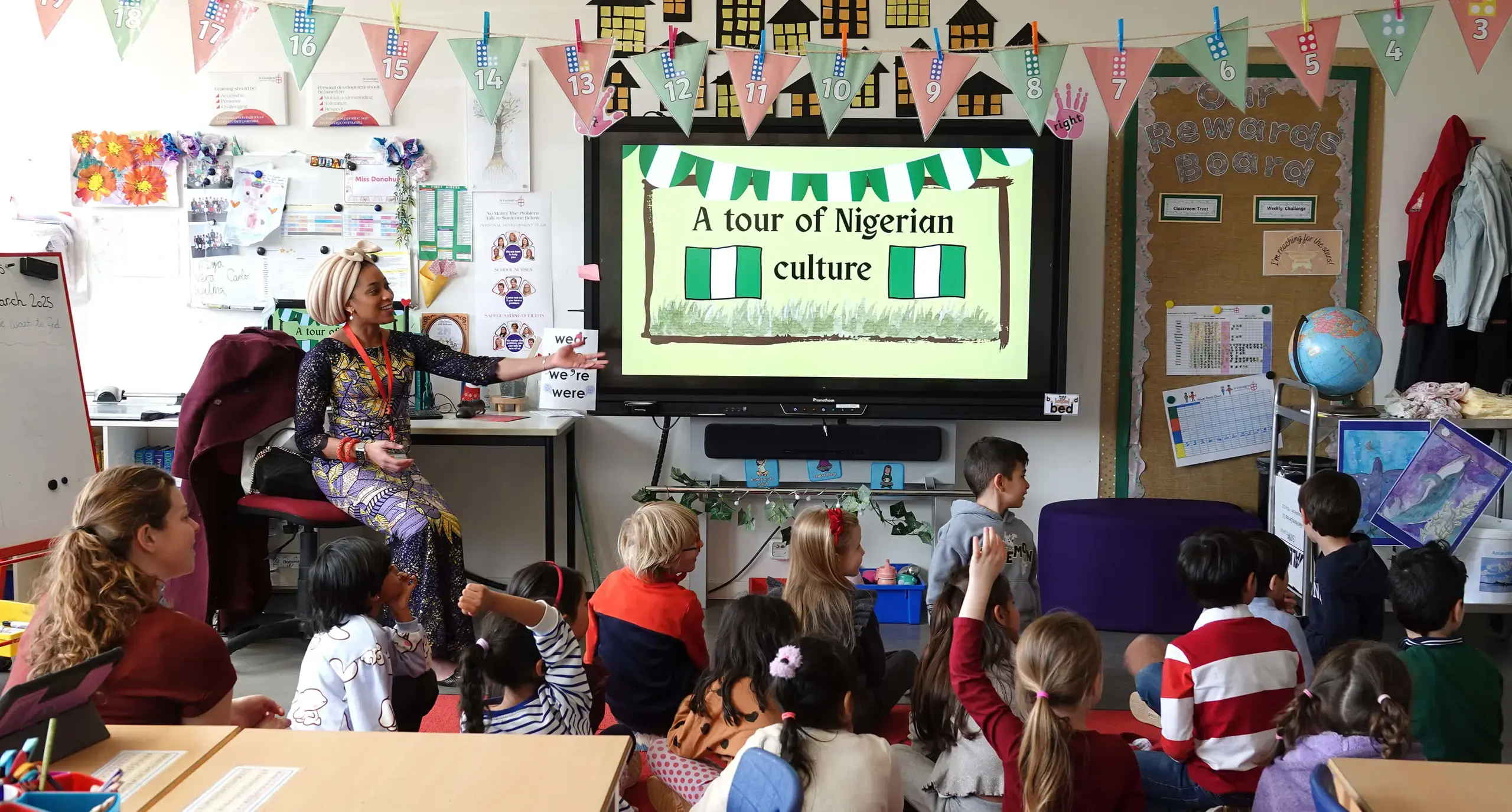 Our Year 2 children have embarked on an African adventure as they begin their new topic, The Secret of the Rain: Tales from Africa. As we journey through Africa, last week’s focus was on Nigeria, and we were fortunate to welcome some special visitors—two of our Year 2 parents, Lanre Animashaun and Osemhen Akhibi, along with Miss Lola, who joined us for the afternoon.