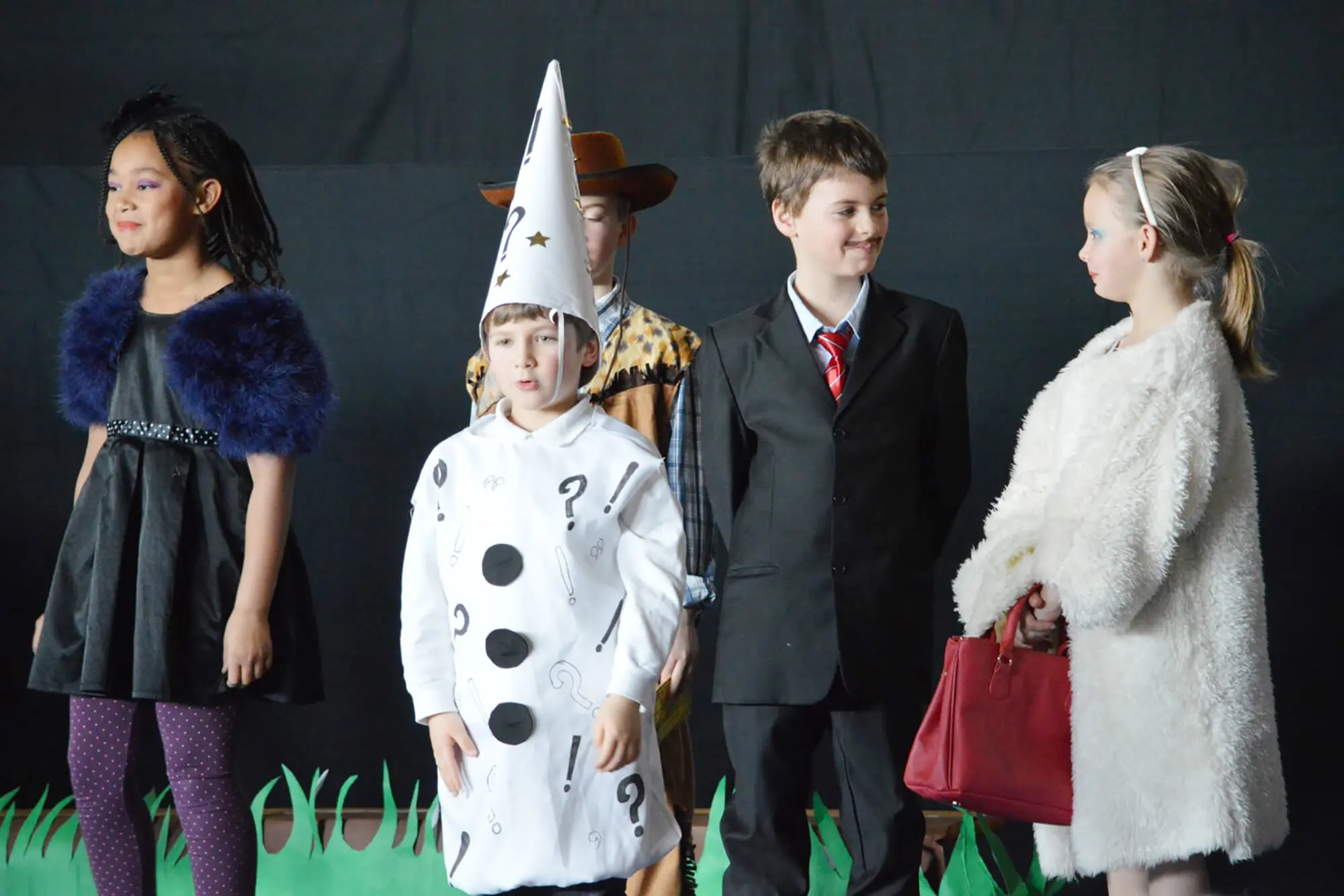 Children in Year 5 offered their musical talents in the choir; the audience could enjoy wonderful full-cast renditions of “The Candy Man Can”, “Pure Imagination”, “(I’ve Got A) Golden Ticket”, Oompa Loompa verses and Veruca Salt’s solo “I Want It Now!” Other Year 5 students did an excellent job as stagehands, with inventive sets that even included chocolate machines created by the Year 3 children and the Team Challenge club.